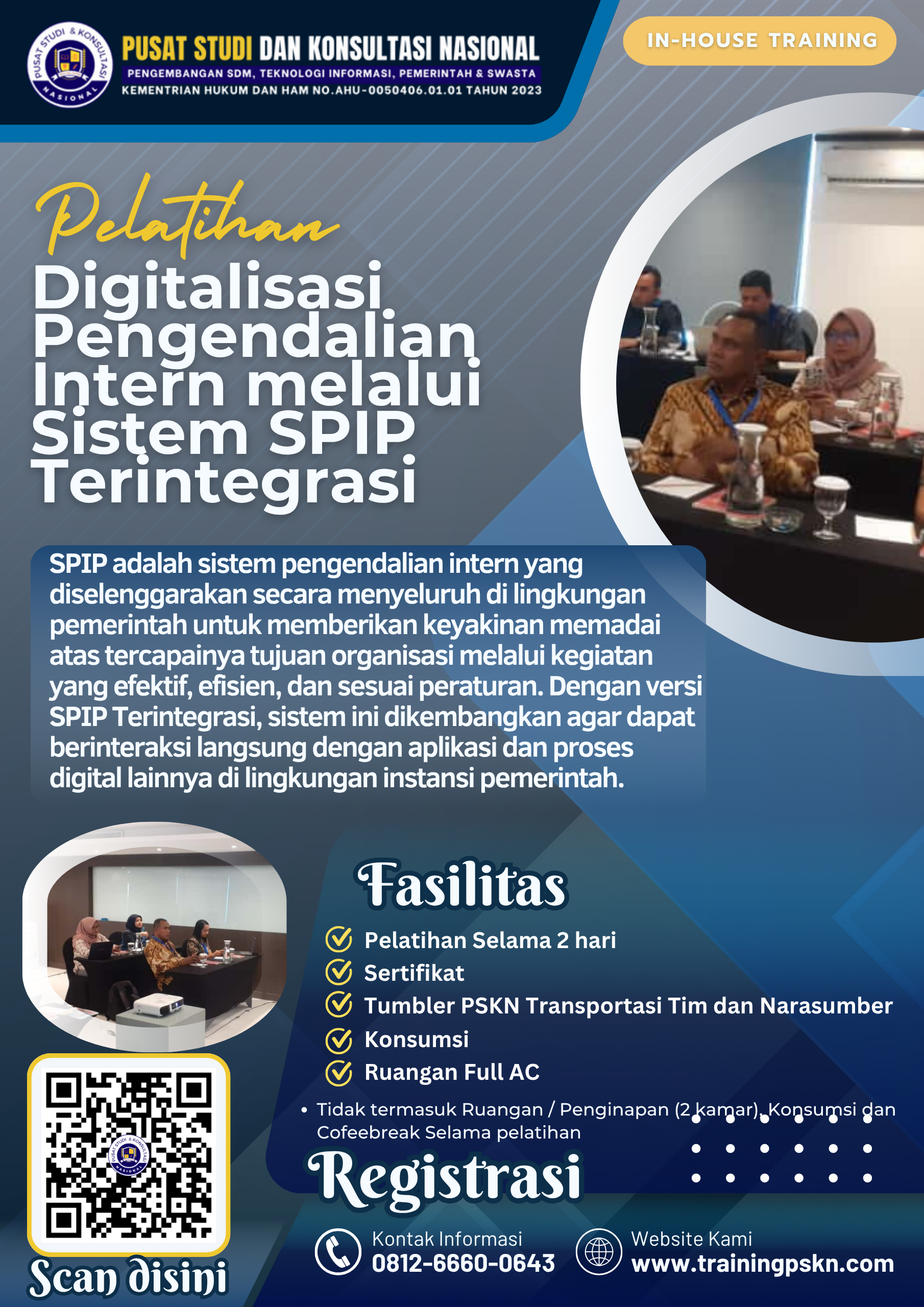 Melalui kegiatan seperti [Bimtek Strategi Penguatan Pengendalian Intern dan Manajemen Risiko di Lingkungan Instansi Pemerintah], aparatur dapat memahami implementasi dan pemanfaatan SPIP Terintegrasi secara optimal.Monitoring dan evaluasi berkelanjutan.