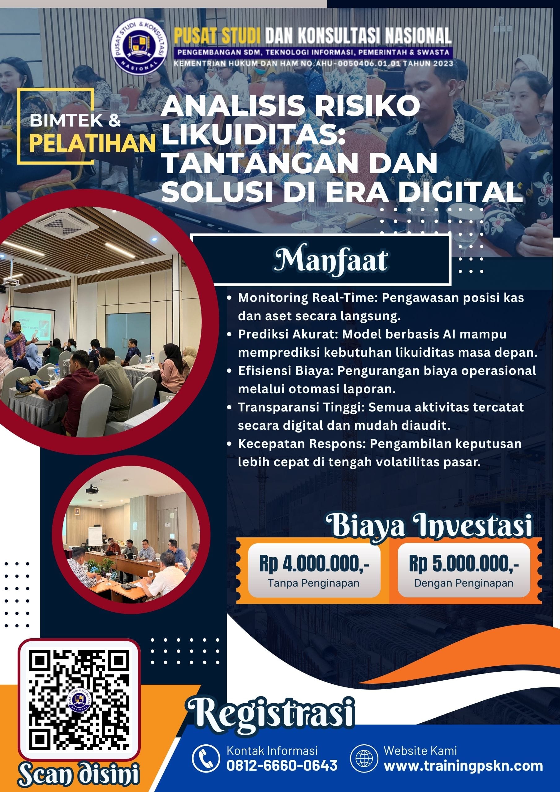 Artikel ini akan membahas secara mendalam bagaimana lembaga keuangan dapat mengidentifikasi, menganalisis, dan memitigasi risiko likuiditas di era digital, serta bagaimana pelatihan dan kebijakan berbasis teknologi dapat menjadi solusi berkelanjutan.