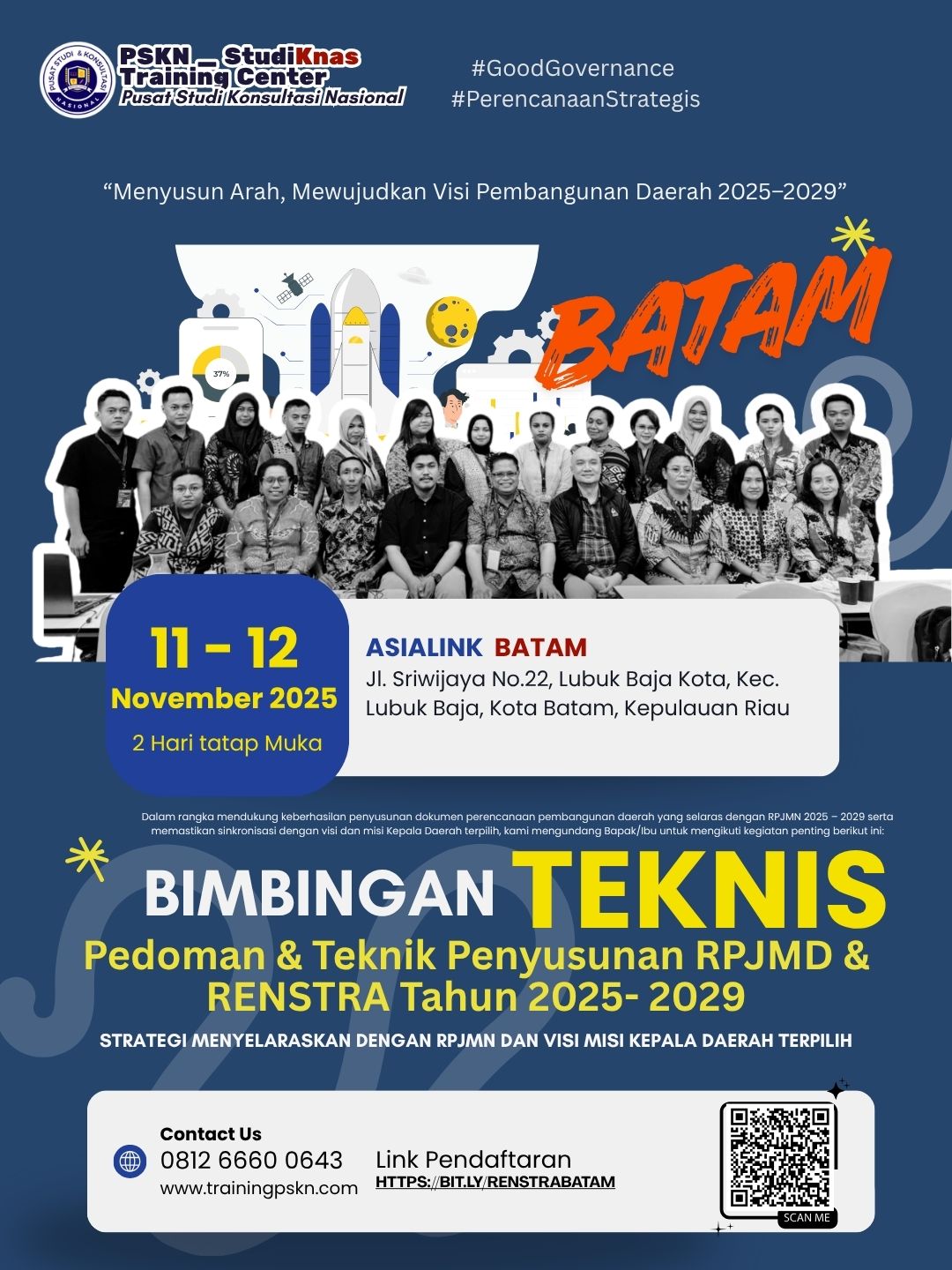 Ikuti Bimtek RPJMD & RENSTRA 2025–2029 di Batam, pelatihan teknis penyusunan perencanaan daerah selaras RPJMN 2025–2029 bersama PSKN – StudiKNas Training Center.