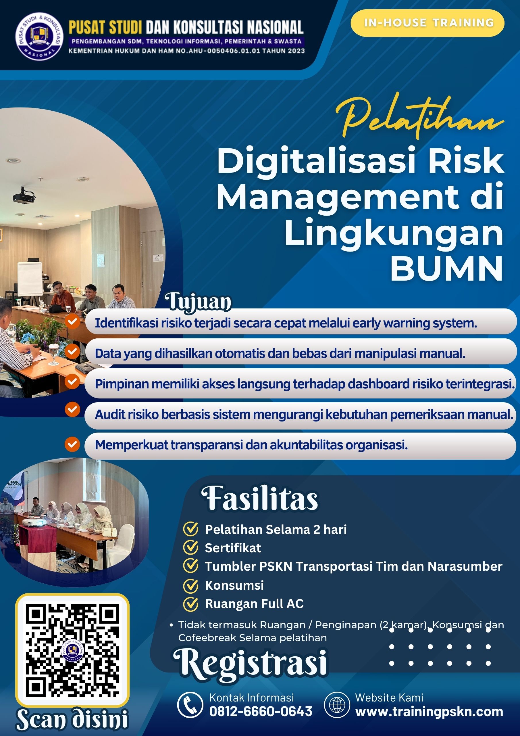 Implementasi ini erat kaitannya dengan pelaksanaan program pelatihan seperti Pelatihan Penguatan Tata Kelola Risiko di Anak Perusahaan dan Afiliasi BUMN, yang menjadi fondasi penting dalam membangun tata kelola risiko terintegrasi dan modern di lingkungan korporasi negara.
