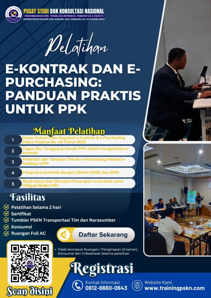 Transformasi digital dalam sistem pengadaan barang/jasa pemerintah telah memasuki babak baru dengan diterapkannya Peraturan Presiden (Perpres) Nomor 46 Tahun 2025. Regulasi ini memperkuat tata kelola dan akuntabilitas dalam proses pengadaan, khususnya terkait e-Kontrak dan e-Purchasing, dua instrumen penting yang wajib dipahami dan diterapkan oleh Pejabat Pembuat Komitmen (PPK).