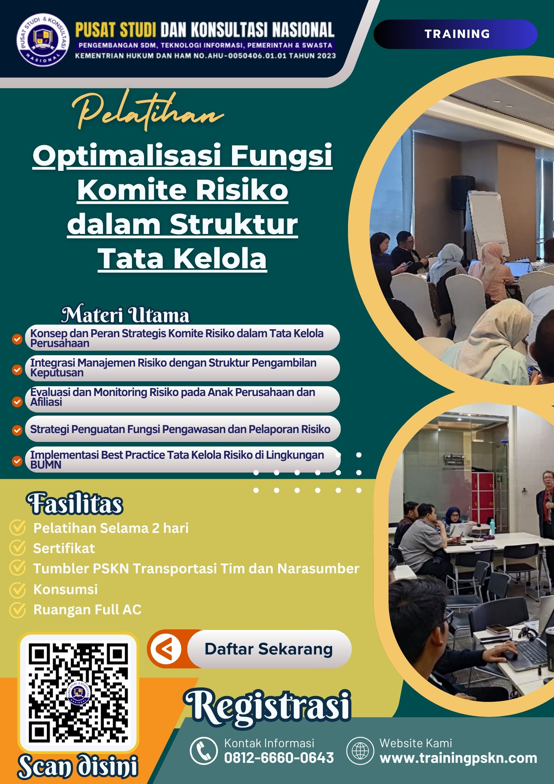 Wujudkan tata kelola perusahaan yang tangguh melalui penerapan manajemen risiko yang efektif dan pembentukan Komite Risiko yang profesional. Segera ikuti Pelatihan Penguatan Tata Kelola Risiko di Anak Perusahaan dan Afiliasi BUMN untuk memperkuat fondasi GRC di organisasi Anda.