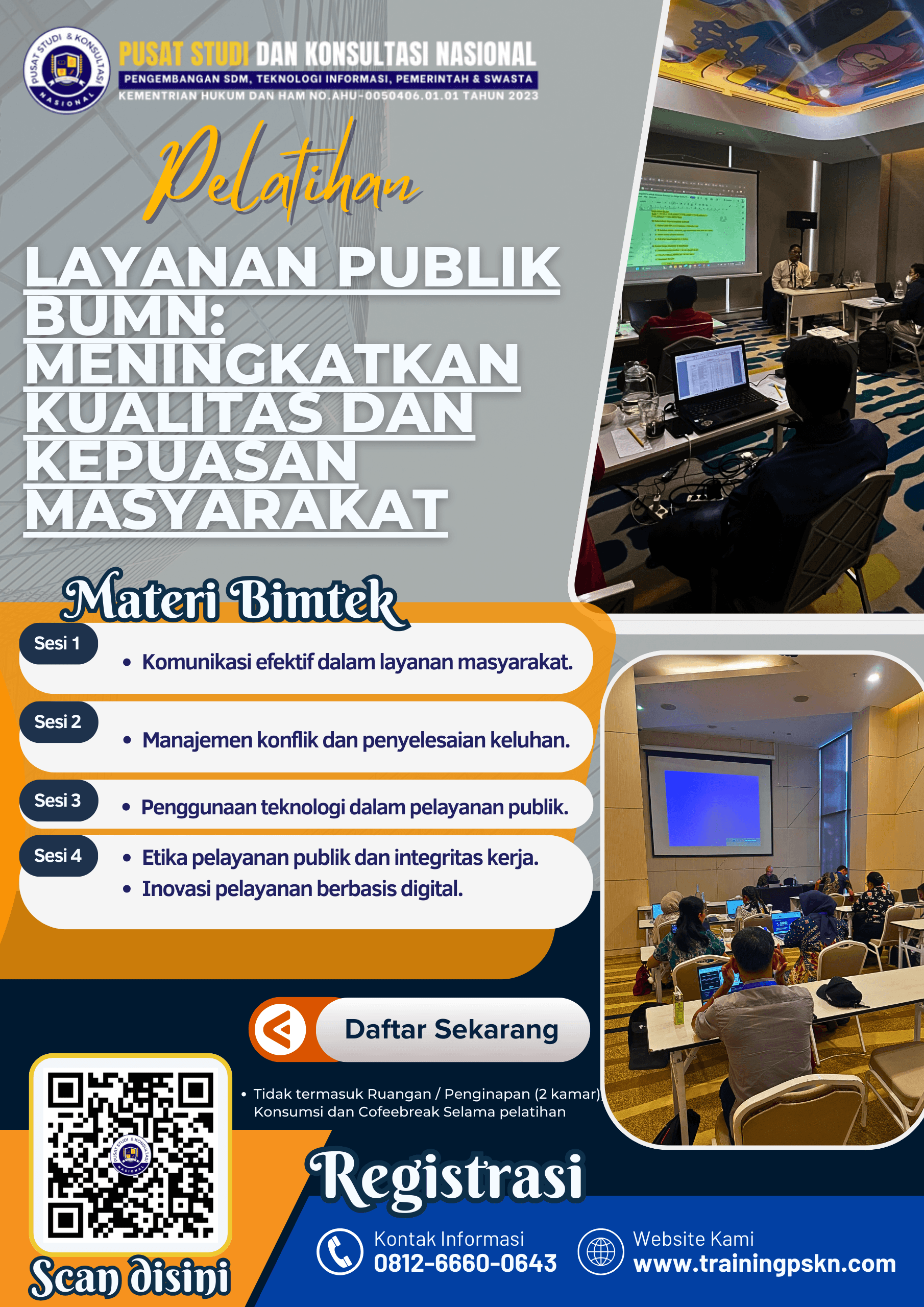 Pelatihan layanan publik di BUMN adalah investasi jangka panjang yang membawa dampak signifikan terhadap kualitas pelayanan dan kepuasan masyarakat. Melalui digitalisasi, inovasi, dan peningkatan kompetensi pegawai, BUMN dapat bertransformasi menjadi institusi yang modern, efisien, dan terpercaya.