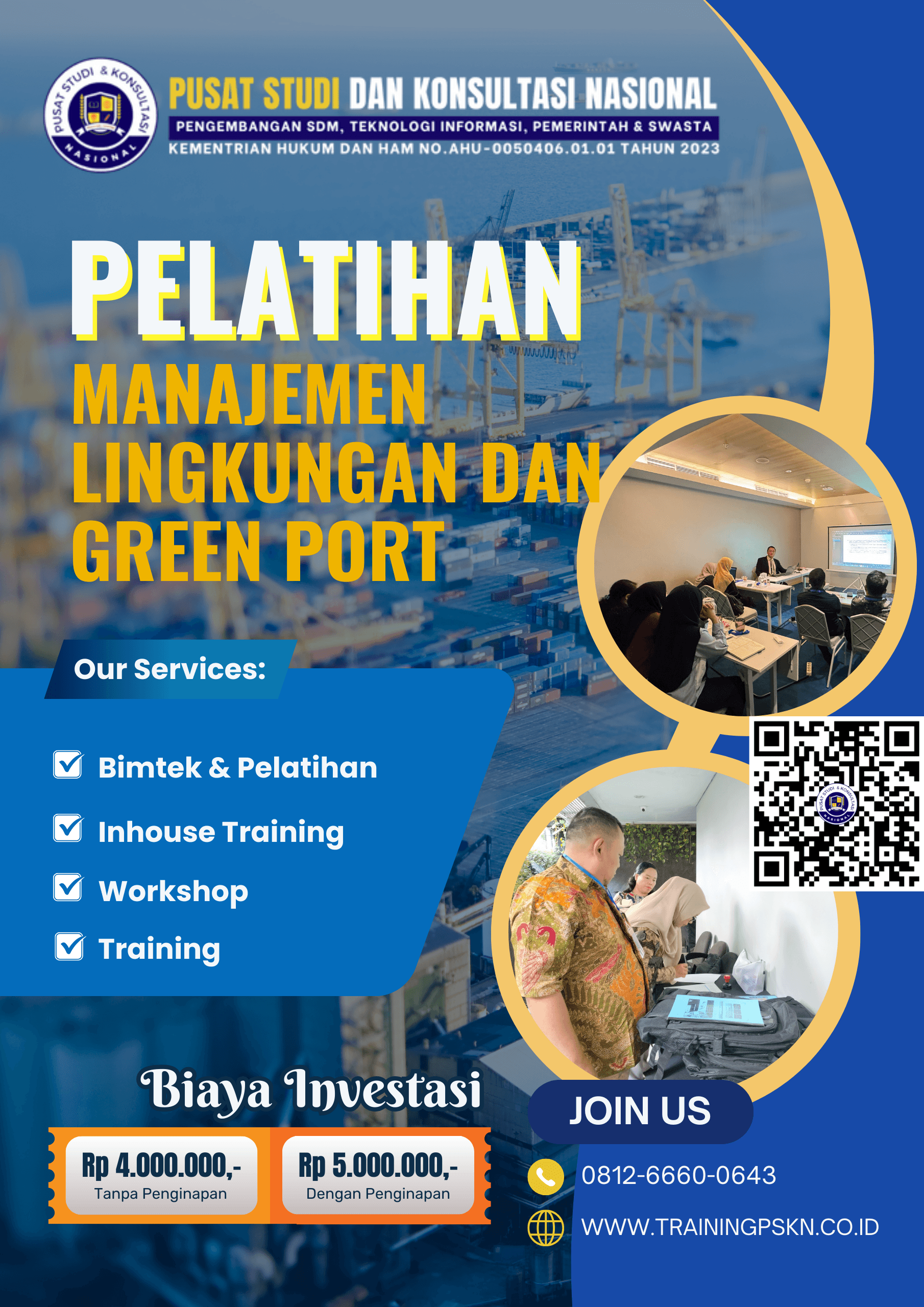 Pelatihan ini memberikan pemahaman tentang strategi manajemen lingkungan, penerapan standar internasional, serta teknologi ramah lingkungan yang mendukung pengelolaan pelabuhan hijau sesuai regulasi nasional maupun global.
