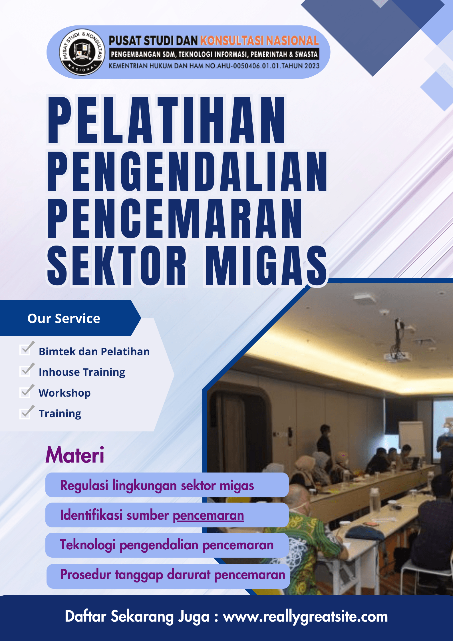 Pelatihan Pengendalian Pencemaran Sektor Migas memberikan pemahaman mendalam mengenai identifikasi, pencegahan, dan penanganan pencemaran lingkungan yang timbul dari kegiatan industri minyak dan gas. Peserta akan mempelajari regulasi terbaru, teknologi pengendalian yang ramah lingkungan, serta prosedur tanggap darurat. Dengan keterampilan ini, peserta mampu meminimalkan dampak negatif terhadap ekosistem, menjaga kesehatan masyarakat, serta mendukung operasional migas yang berkelanjutan dan sesuai standar lingkungan.