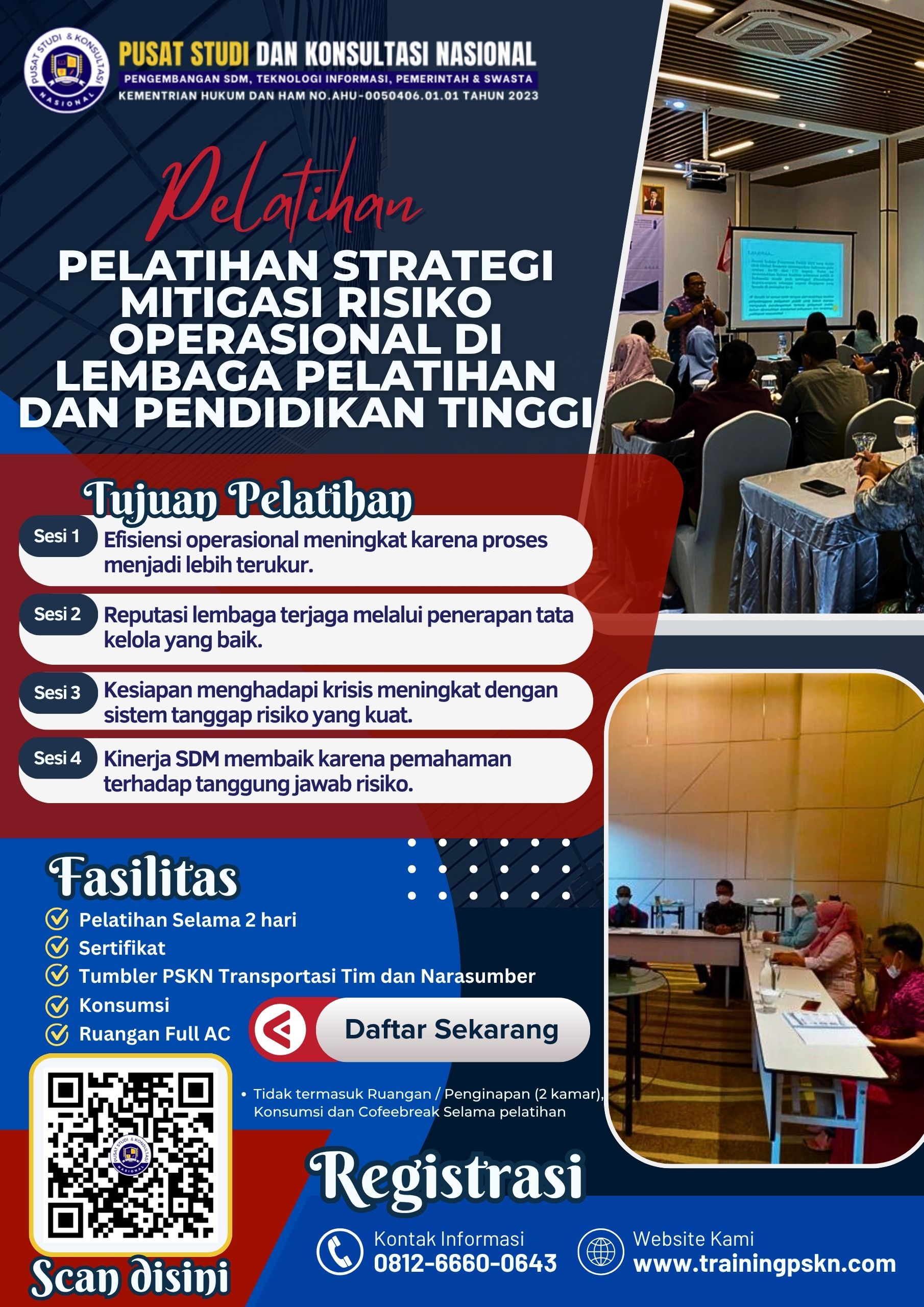 Pelatihan Strategi Mitigasi Risiko Operasional di Lembaga Pelatihan dan Pendidikan Tinggi meningkatkan efektivitas tata kelola dan keberlanjutan institusi.
