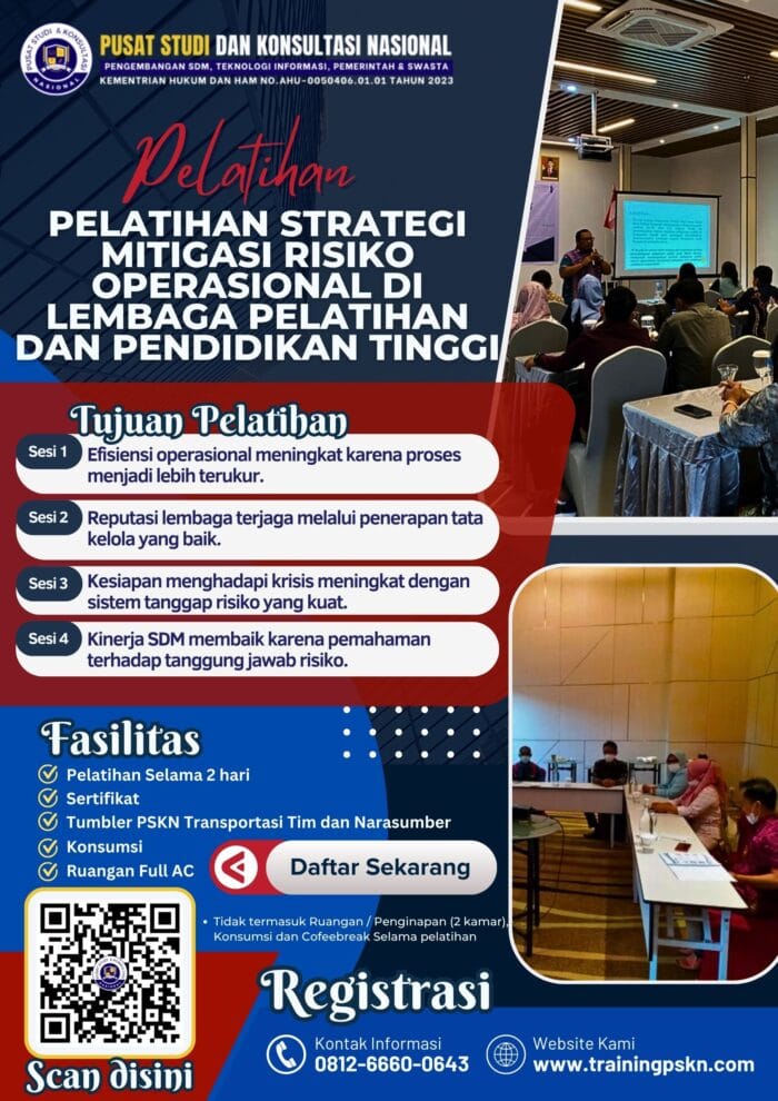 Pelatihan Strategi Mitigasi Risiko Operasional di Lembaga Pelatihan dan Pendidikan Tinggi meningkatkan efektivitas tata kelola dan keberlanjutan institusi.