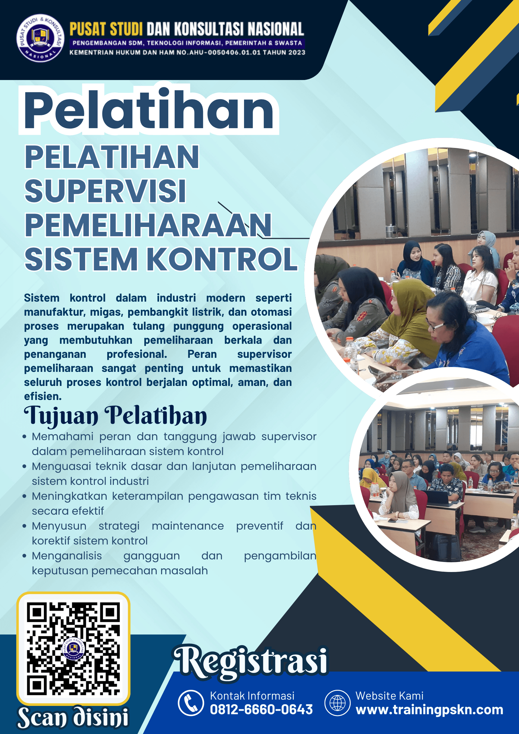 Sayangnya, masih banyak supervisor teknis yang belum dibekali dengan keterampilan manajerial dan teknis yang mumpuni dalam menangani sistem kontrol. Pelatihan ini dirancang untuk meningkatkan kapasitas peserta dalam mengelola tim pemeliharaan, menyusun strategi perawatan, memahami sistem kontrol modern, serta menganalisis masalah dan mengambil keputusan teknis secara cepat dan tepat.