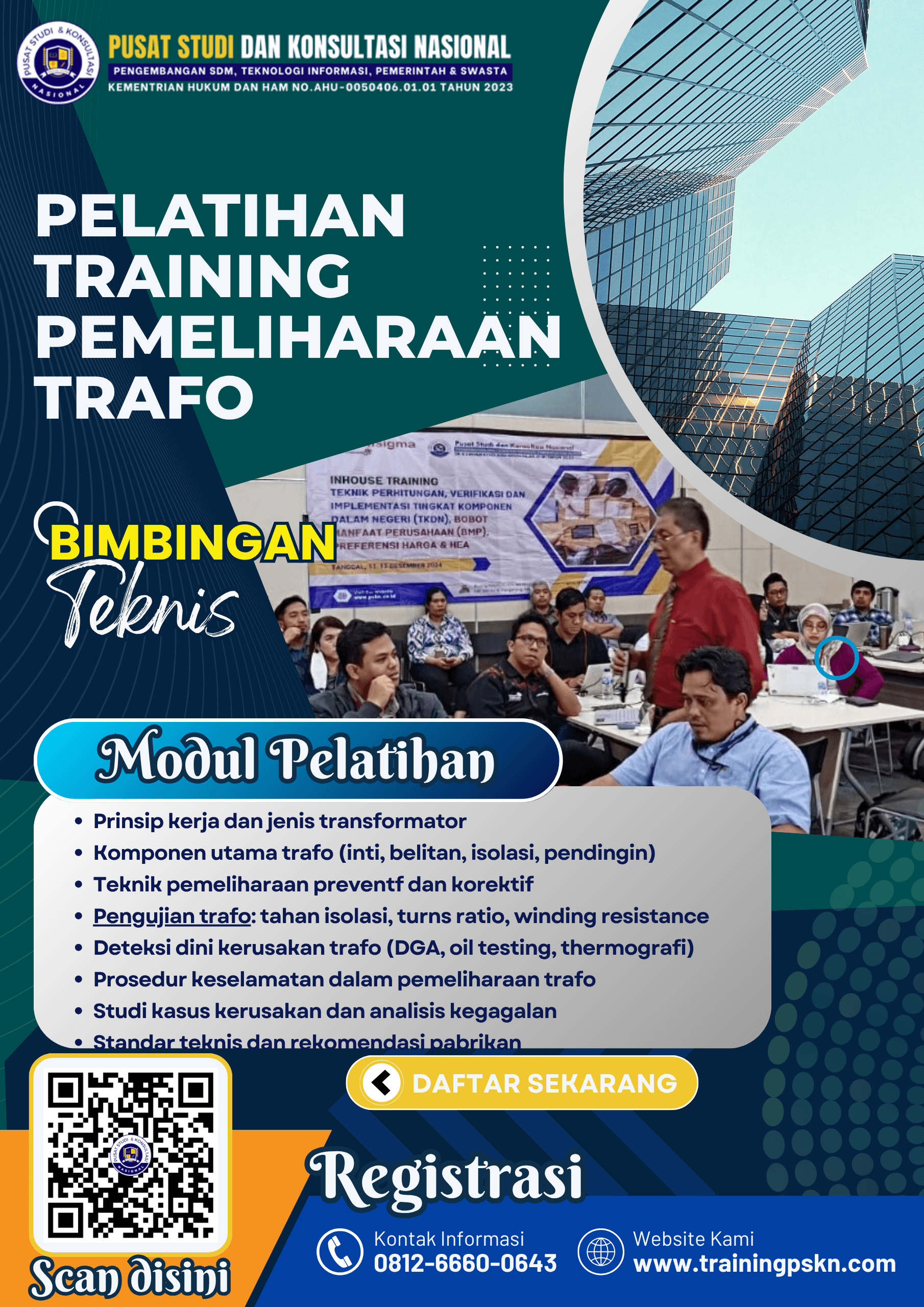 Oleh karena itu, pemeliharaan trafo harus dilakukan secara terencana dan terukur untuk mencegah kerusakan dini serta memperpanjang umur pakai peralatan. Pelatihan ini bertujuan membekali peserta dengan pengetahuan dan keterampilan dalam merawat, memeriksa, dan menguji trafo sesuai standar teknis yang berlaku.