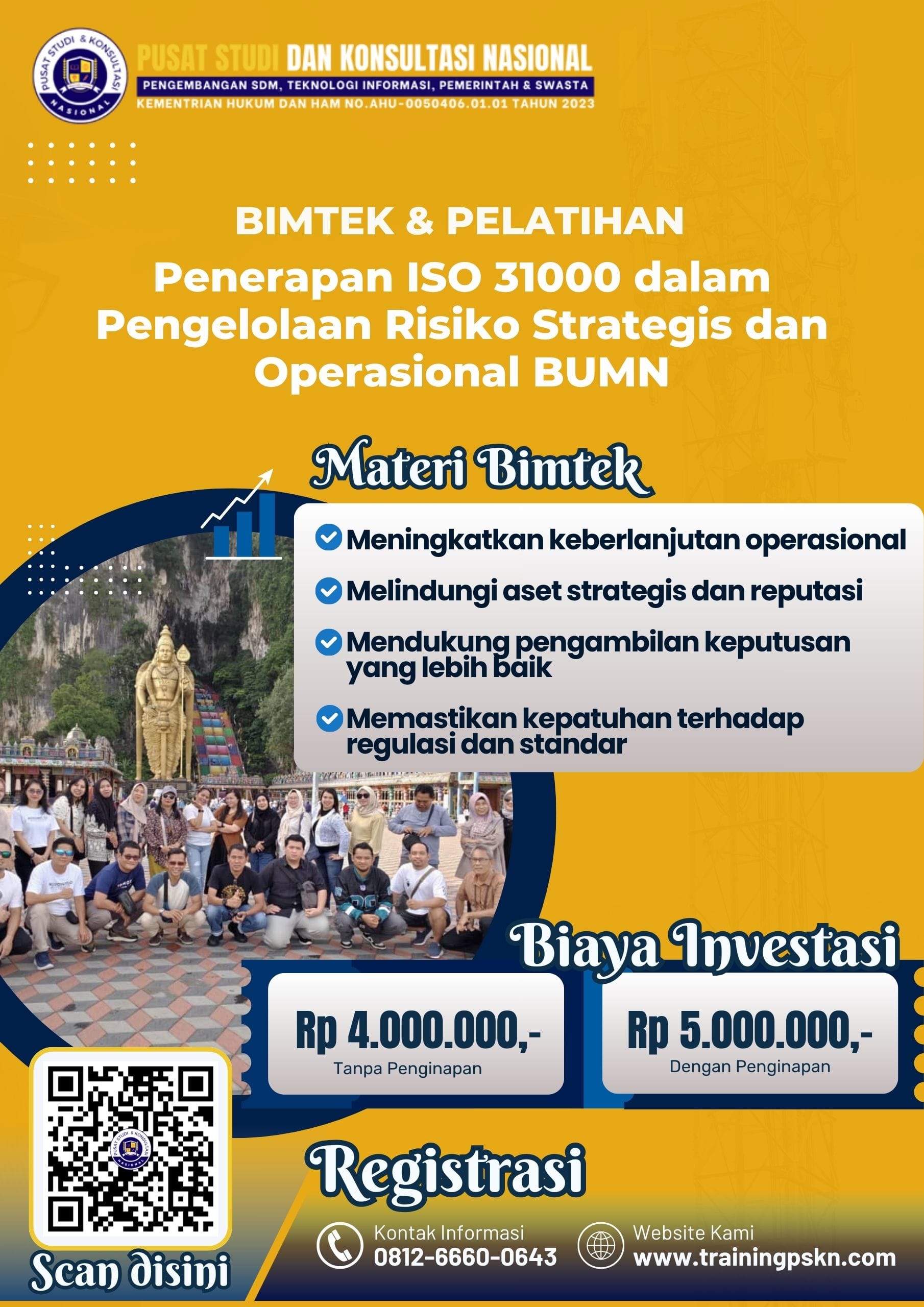 Di era ketidakpastian yang semakin kompleks, organisasi—termasuk badan usaha milik negara (BUMN)—dituntut untuk mampu mengelola risiko secara sistematis dan terukur. Kerangka ISO 31000 menjadi salah satu acuan penting yang dapat membantu suatu organisasi mengintegrasikan manajemen risiko ke seluruh level, mulai dari strategi hingga operasional. Bagi BUMN, penerapan ISO 31000 bukan sekadar pemenuhan regulasi, tetapi juga langkah strategis untuk menjaga keberlanjutan, reputasi, dan daya saing organisasi.