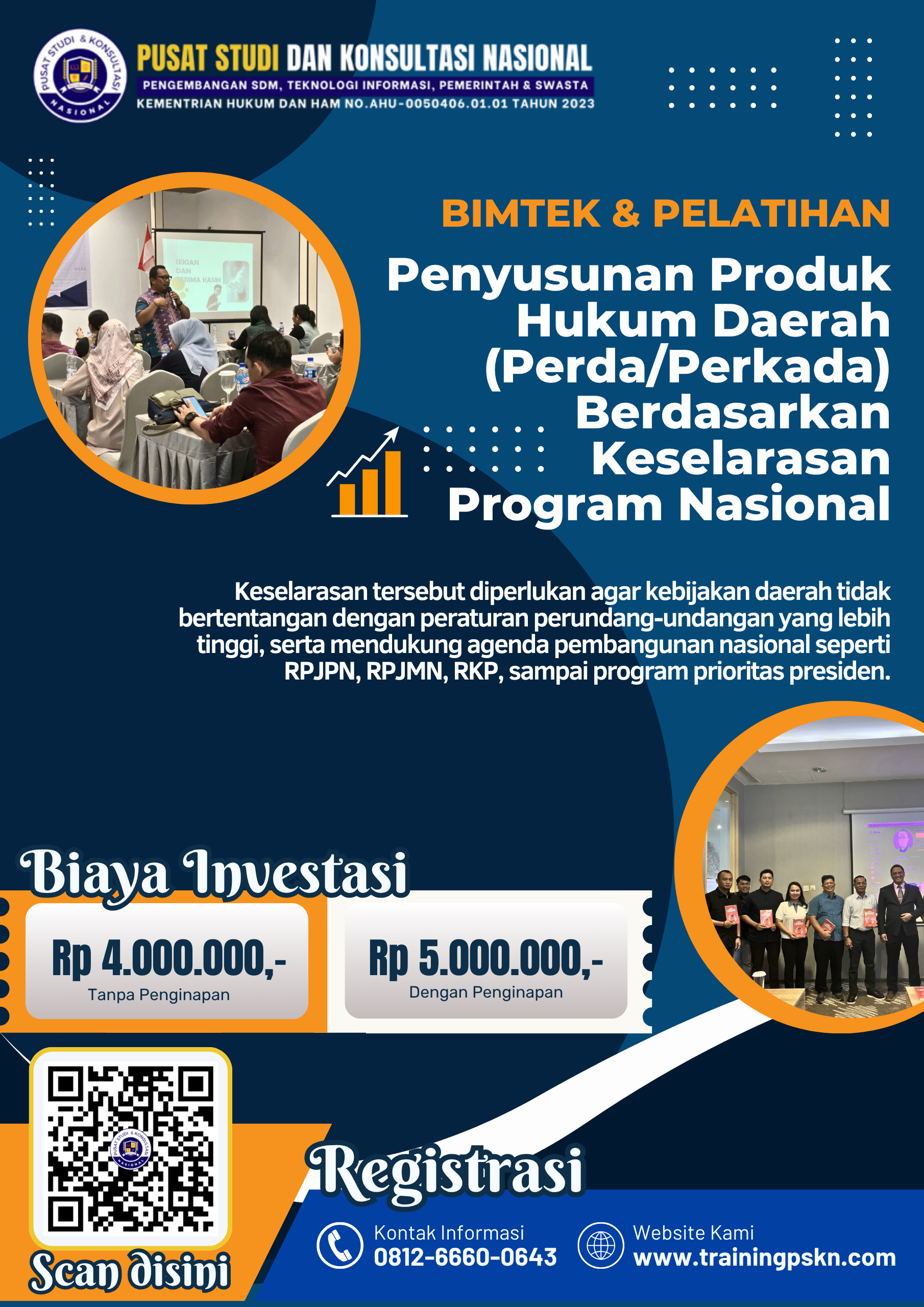 Penyusunan Perda/Perkada berdasarkan keselarasan program nasional merupakan wujud sinergi antara pemerintah pusat dan daerah dalam menciptakan tata kelola pemerintahan yang efektif, harmonis, dan berorientasi hasil (result oriented). Dengan regulasi yang terstruktur, terukur, dan sinkron, pembangunan nasional dapat berjalan lebih cepat dan tepat sasaran.