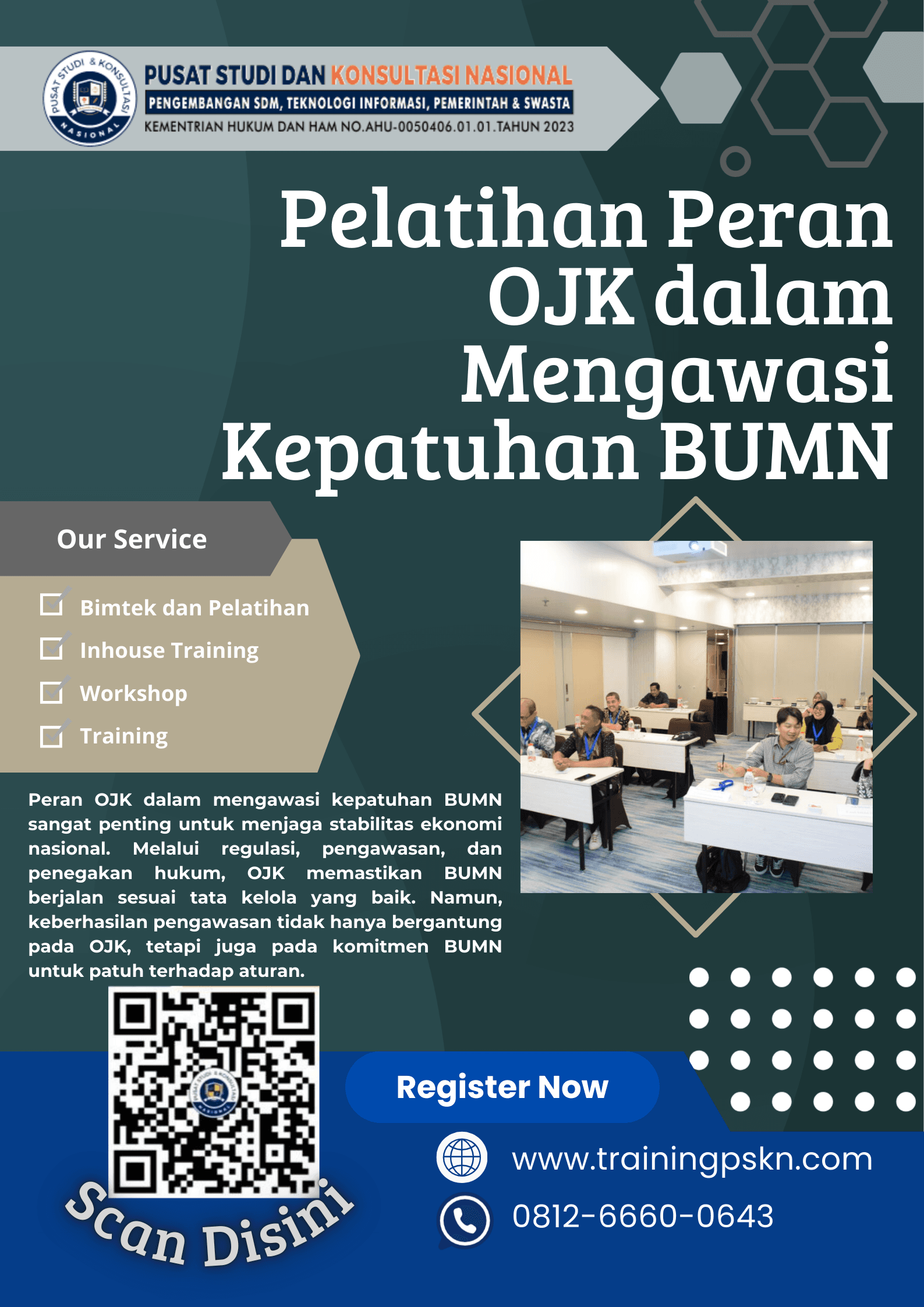 Untuk memperkuat pemahaman tentang regulasi dan tata kelola, pelatihan menjadi solusi strategis. Program Pelatihan Hukum dan Regulasi BUMN: Kepatuhan terhadap Kebijakan Pemerintah dapat menjadi langkah tepat bagi perusahaan dalam memastikan SDM memahami aturan OJK sekaligus menerapkannya dengan baik.