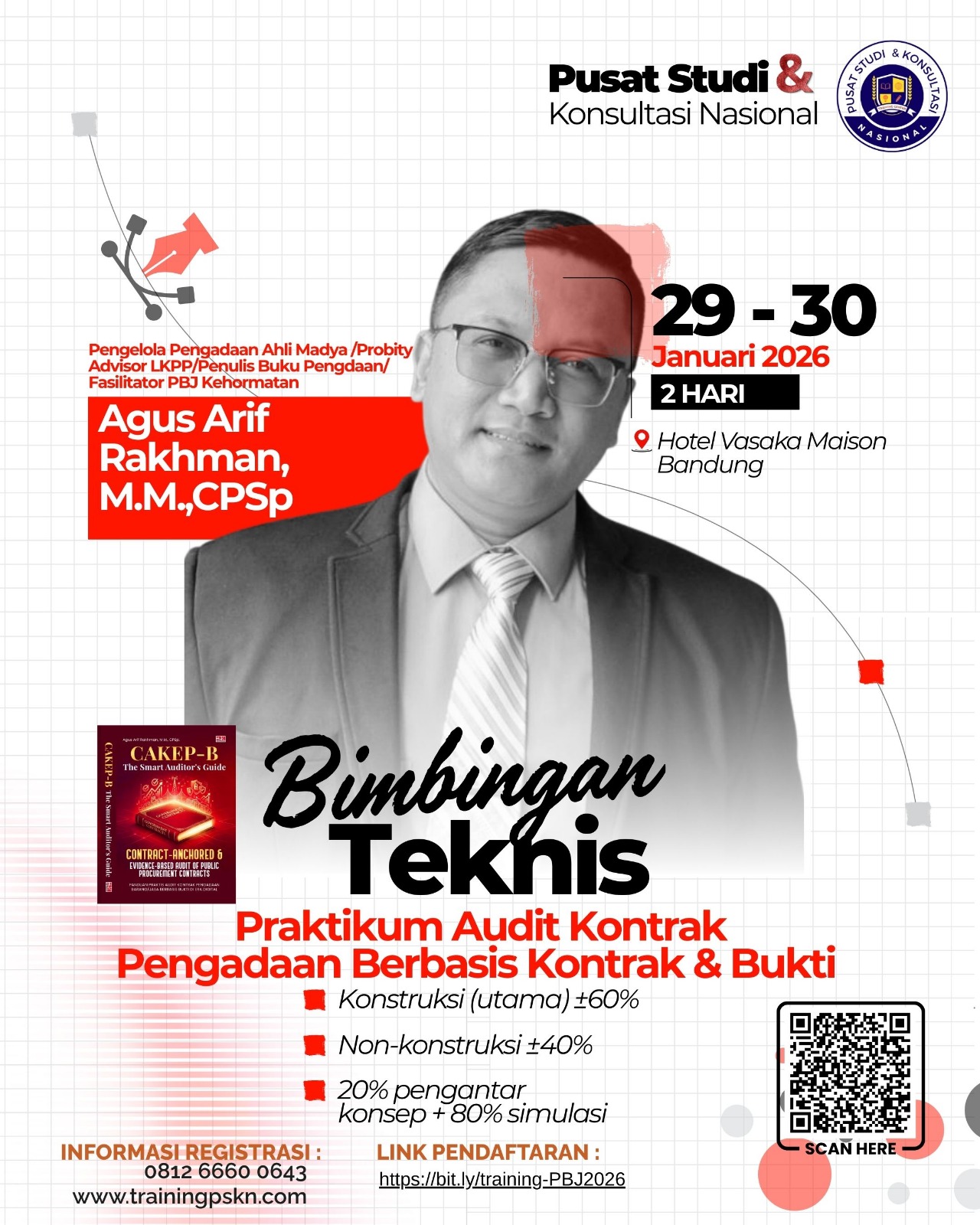 | 11.30–12.00 | 30’ | Latihan: Bukti Mutu, Fungsi, Serah Terima | Menguji bukti: uji mutu, hasil inspeksi, BAST/PHO/FHO, foto lapangan | Latihan dokumen | Daftar bukti “cukup/kurang” | Sampel dokumen simulasi |