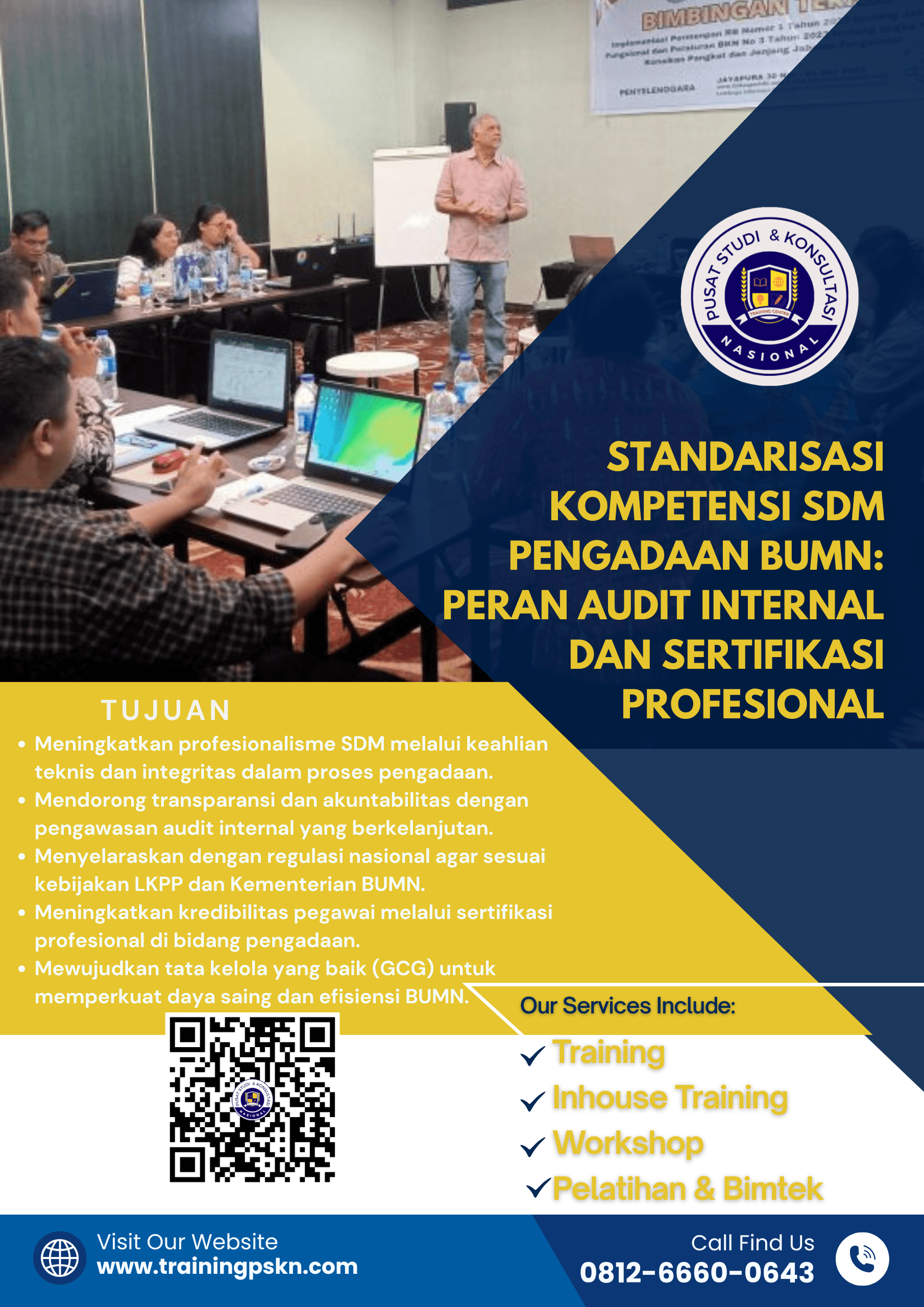 Untuk memperkuat sistem, BUMN perlu mengintegrasikan program sertifikasi dengan pelatihan berkelanjutan. Misalnya, melalui Pelatihan Pengadaan Barang dan Jasa BUMN: Kepatuhan dan Transparansi, SDM dapat dibekali dengan pemahaman regulasi terbaru, praktik terbaik, hingga simulasi kasus nyata yang memperkuat keterampilan.