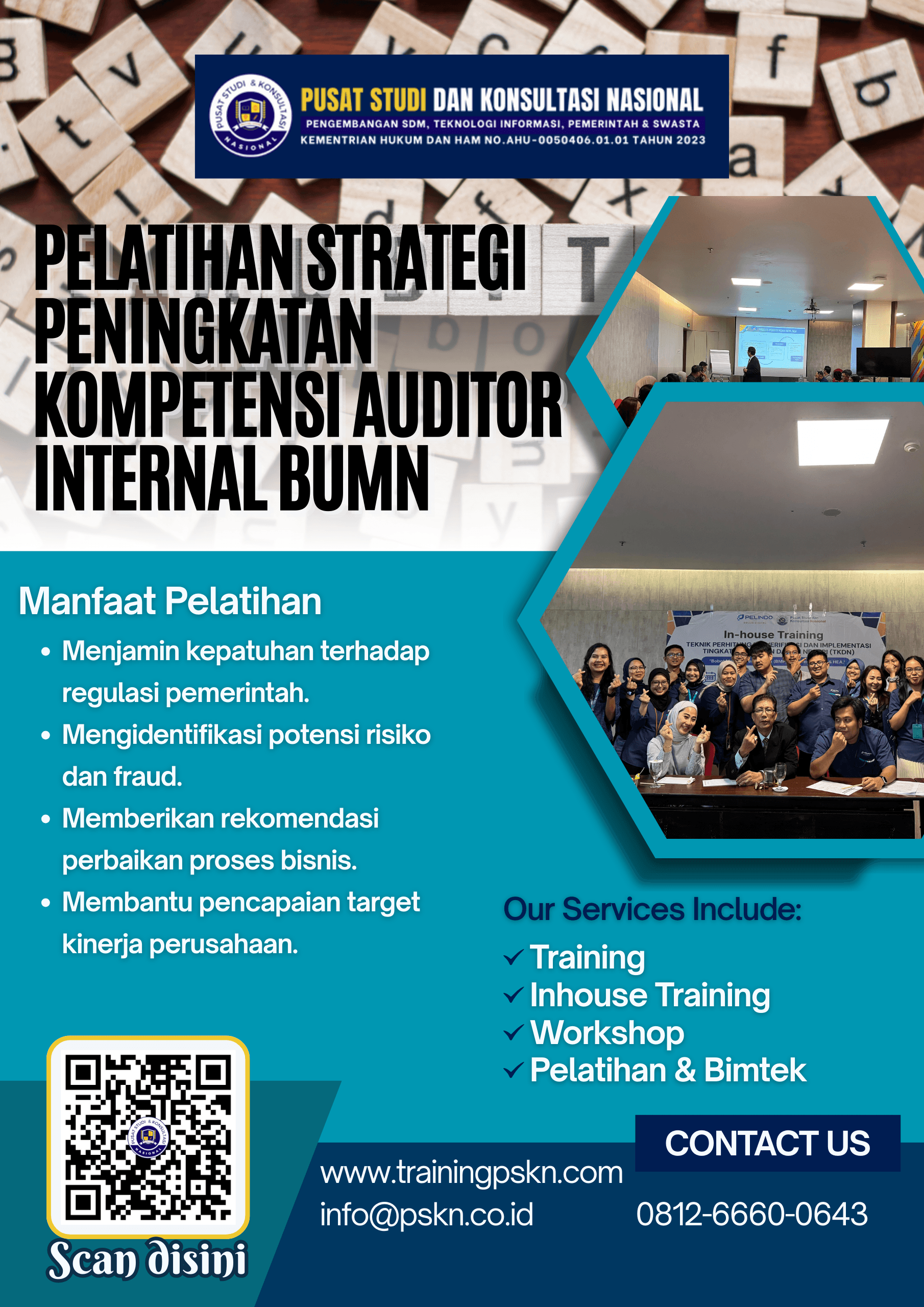 Tingkatkan kompetensi auditor internal Anda dengan mengikuti program pelatihan dan sertifikasi yang dirancang khusus untuk memperkuat transparansi dan pengendalian kinerja BUMN.