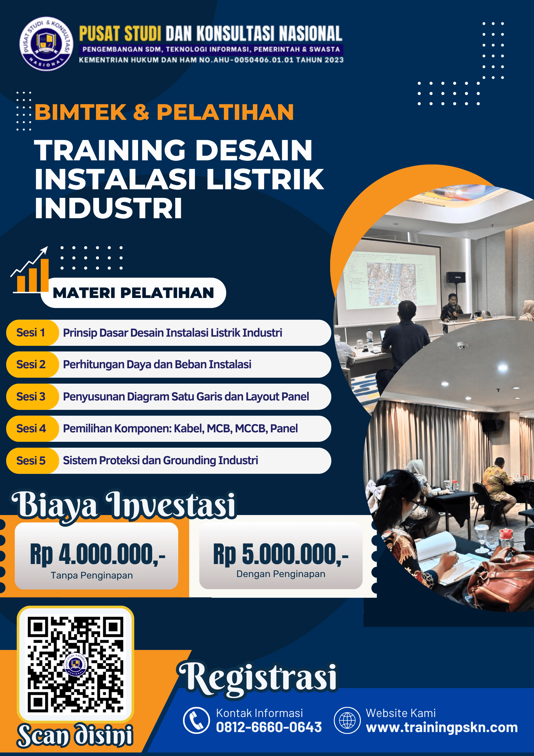 Instalasi listrik industri memiliki karakteristik yang jauh lebih kompleks dibanding instalasi rumah tangga. Hal ini disebabkan oleh kebutuhan daya yang besar, keragaman jenis beban, sistem proteksi yang lebih rumit, dan standar keselamatan yang ketat. Desain instalasi listrik industri yang tepat akan sangat berpengaruh terhadap efisiensi energi, kelangsungan operasional, serta keselamatan kerja. Oleh karena itu, dibutuhkan pelatihan khusus bagi para perancang, teknisi, maupun operator untuk memahami prinsip desain, pemilihan komponen, hingga analisis teknis berdasarkan standar kelistrikan nasional dan internasional.