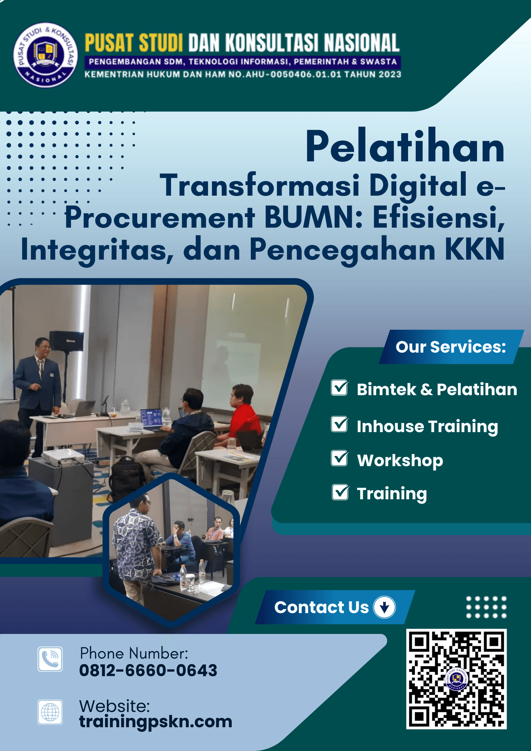 Untuk memahami lebih dalam mengenai regulasi, standar kepatuhan, dan transparansi dalam pengadaan, BUMN dapat mengacu pada Pelatihan Pengadaan Barang dan Jasa BUMN: Kepatuhan dan Transparansi