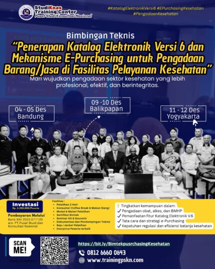 PSKN menyelenggarakan kegiatan Bimtek Katalog Elektronik 2026 Terbaru, bimbingan teknis dan pendidikan pelatihan yang dilaksanakan di kota – kota besar seluruh indonesia