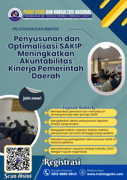 PSKN menyelenggarakan kegiatan bimtek SAKIP 2026 Terbaru, bimbingan teknis dan pendidikan pelatihan yang dilaksanakan di kota – kota besar seluruh indonesia